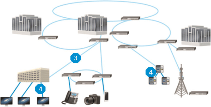 第二级是各配线间的交换机,为二级节点。在楼内设置光纤主干作为数据传输干线,从核心层到二级节点,并在分配线间端接。二级交换机可以采用以太网或快速以太网交换机,它向上与网络中心的主干交换机相连,向下直接与服务器和工作站连接。