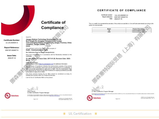 挪森国际,作为通讯领域的创新者,深知产品安全与品质是企业立足之本,更是打开国际市场的金钥匙。通过与UL的深度合作,挪森国际的通讯产品经过严格测试与认证,不仅证明了其产品的卓越性能与安全可靠性,更为其品牌赢得了国际信誉。UL的认证,如同一张全球通行的“品质护照”,为挪森国际进军欧美高端市场提供了强有力的保障。