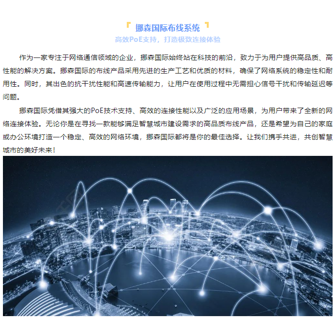 挪森国际布线系统,高效PoE支持,打造极致连接体验!