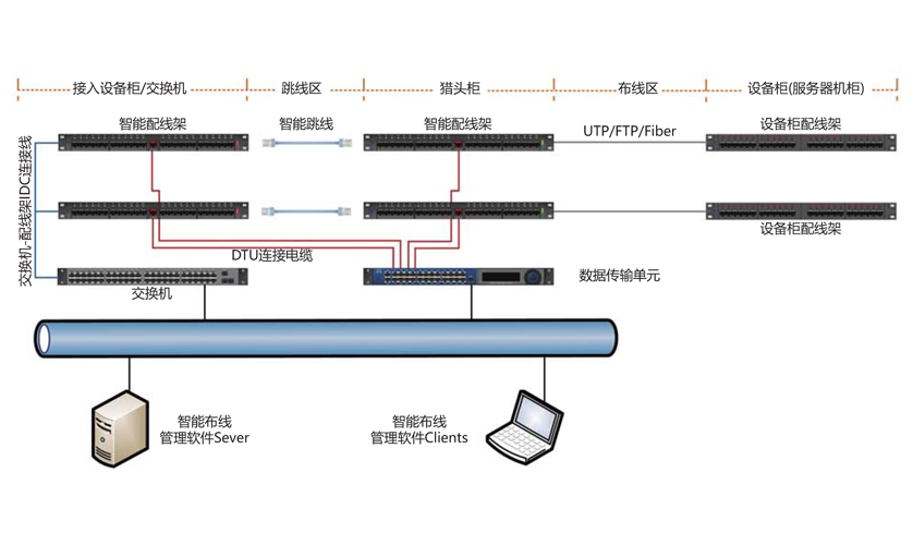 扑结构。在链路出现故障后能及时准确的提示故障点的范围,快速引导管理员进行工作指令(比如跳线的连接或断开)的执行。并可对信息点的使用